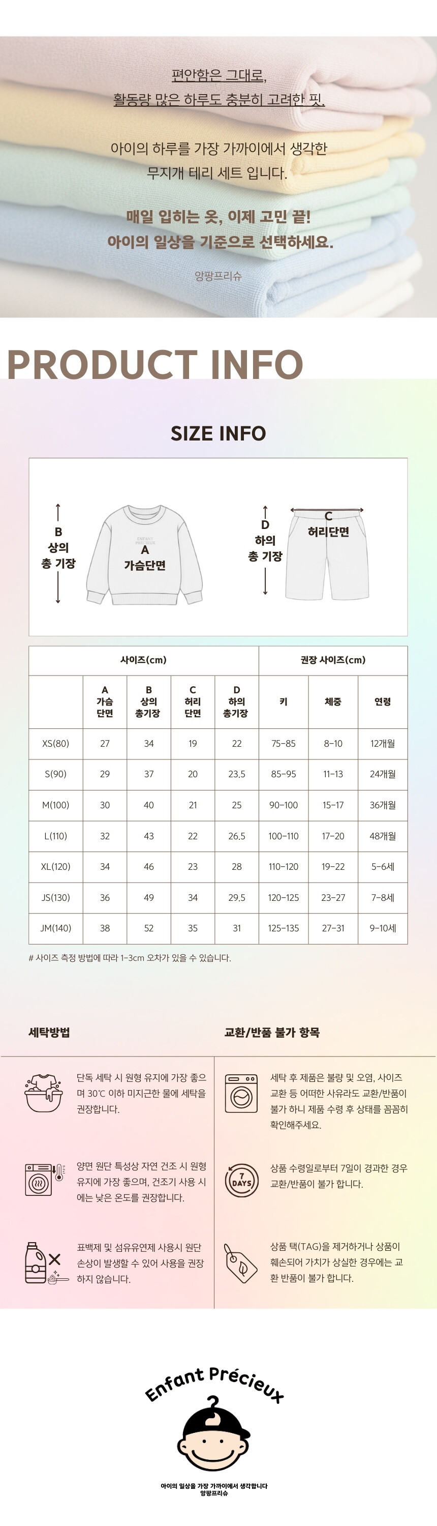 [바로배송] 무지개 테리세트