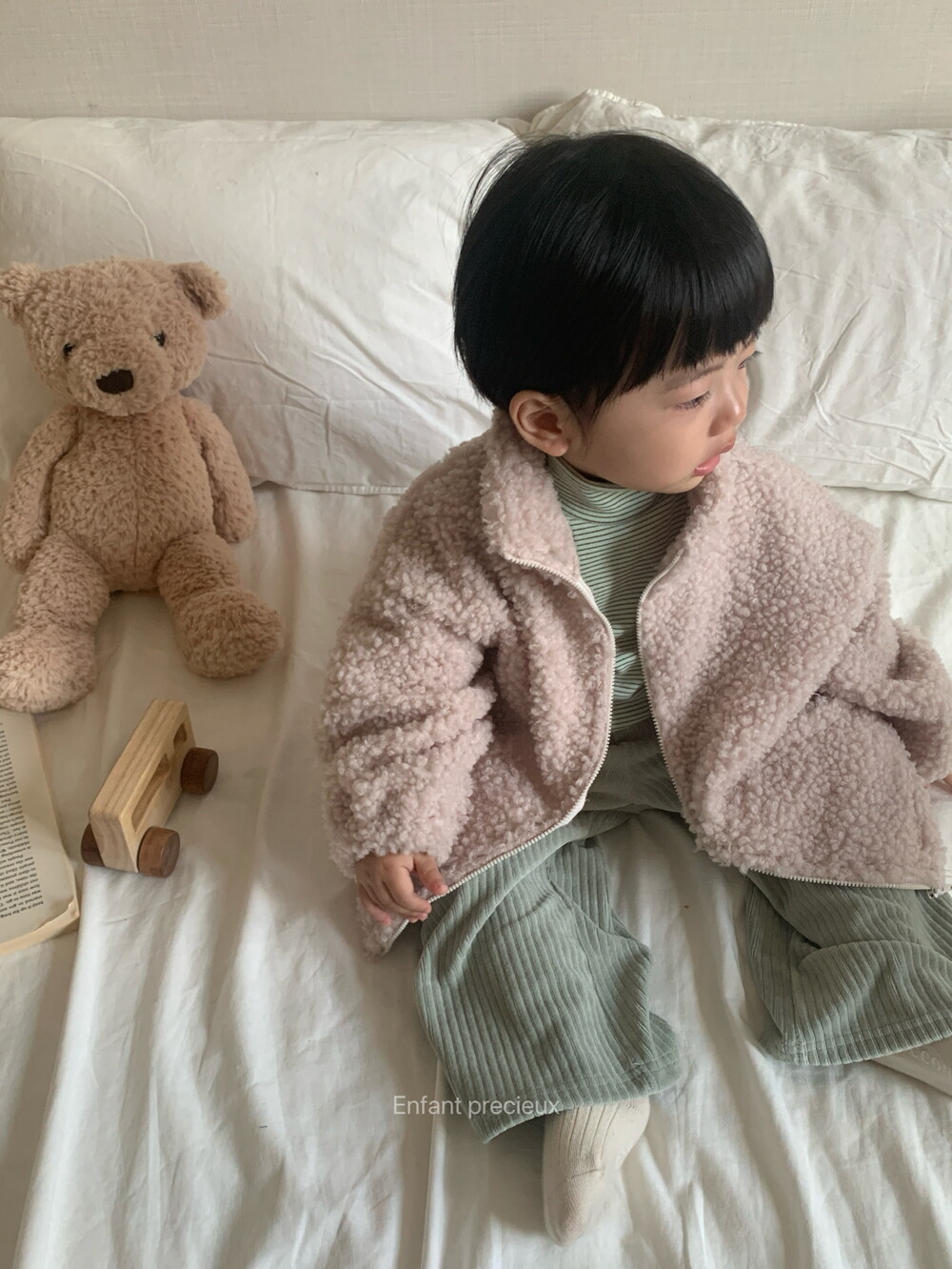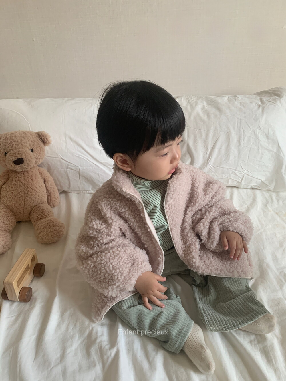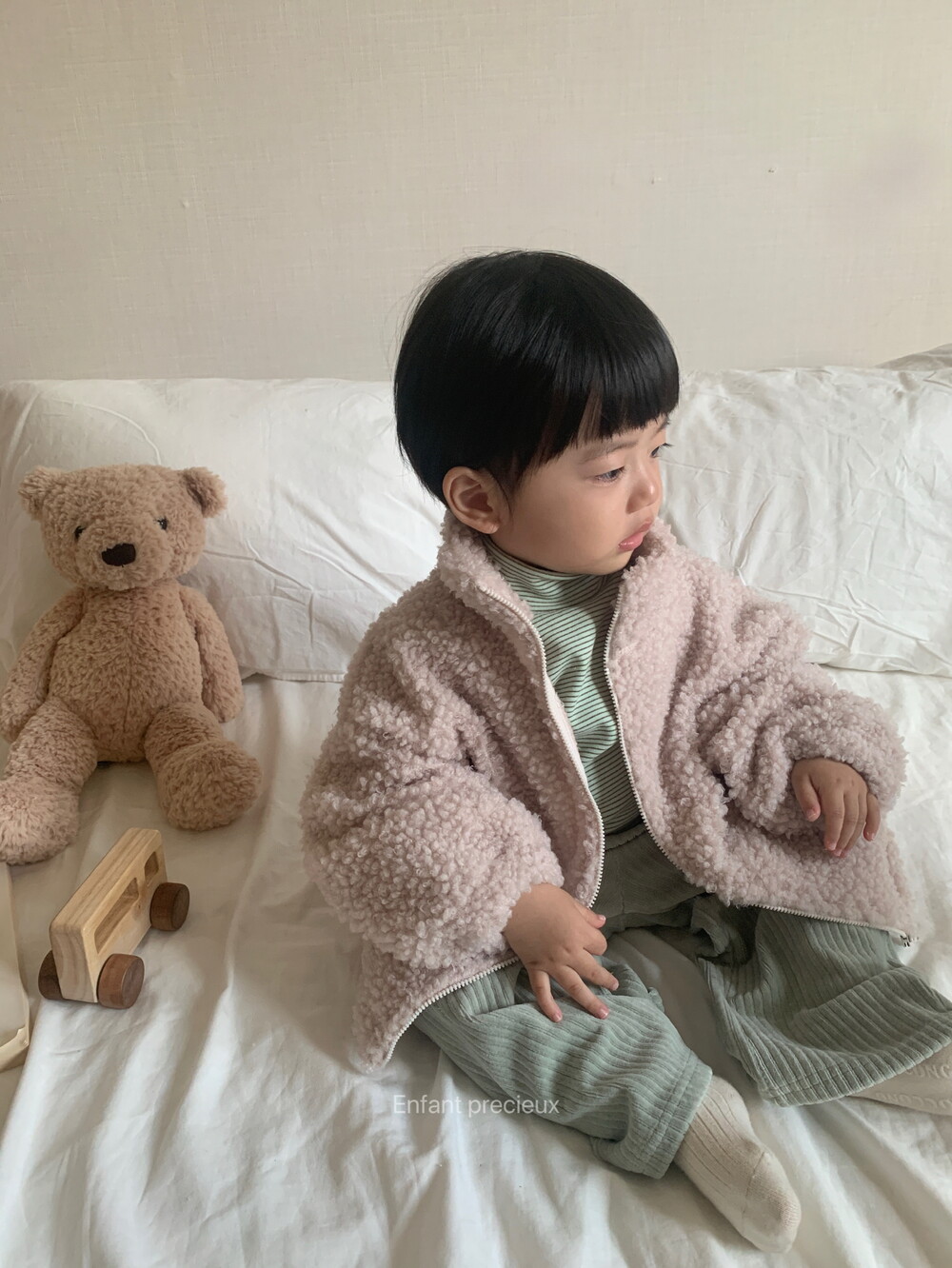 답답하지 않은 가벼운 두께감 두꺼운 외투 싫어하는 아이에게 특히 잘 맞을 것 같아요.