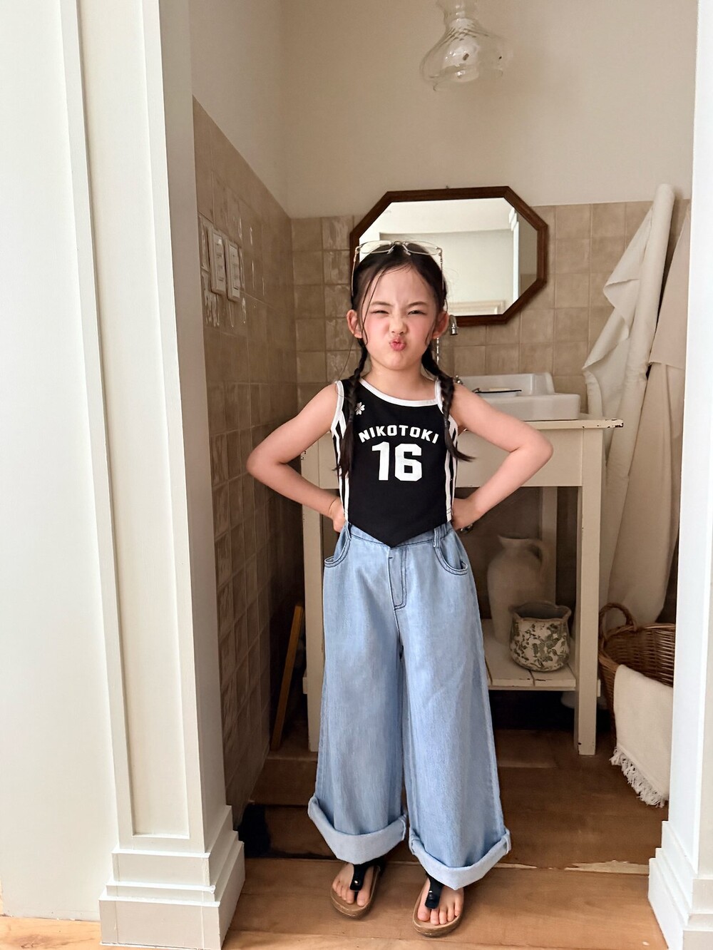 콤마-린넨와이드청바지